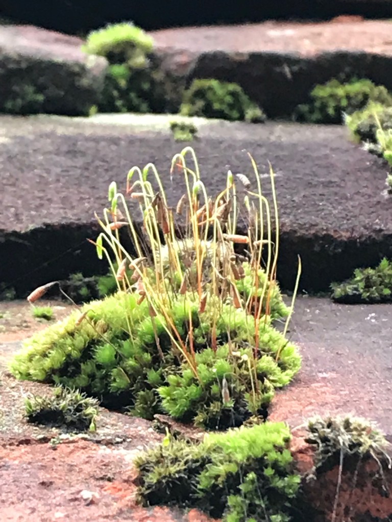 Watching Monty Don’s Japanese Gardens today reminded me that I always find bonsai plants interesting – though I’m never sure why. So I took a photo of these miniature moss clumps on our kitchen roof tiles. (Yes, we should do something about them!)
