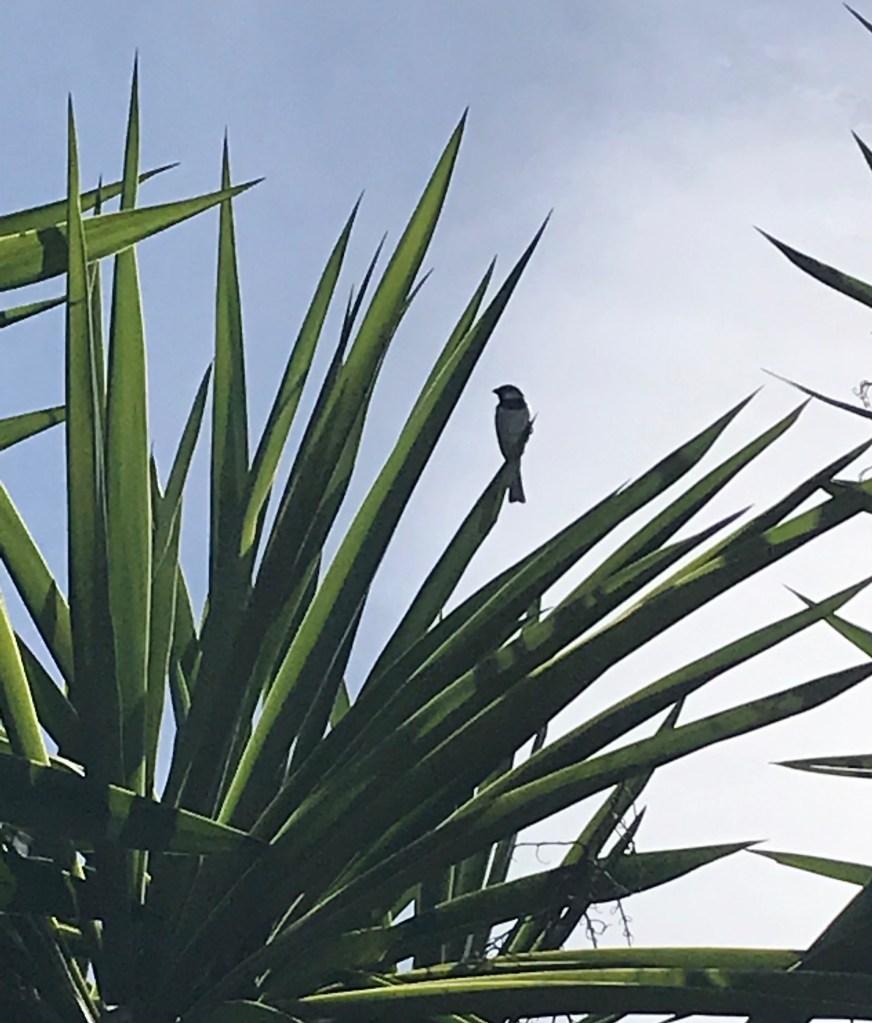 As we returned our hire car at the airport, I noticed these ice-cream-cone white flowers on the giant yucca trees. But more impressive was the deafening bird song, with hundreds of sparrows perched or fluttering among the dagger leaves.