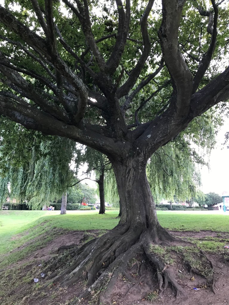 But looking closely at this tree today I felt a bit uneasy. It was a cooler evening. The tree was twisted and gnarled – with little crevices where unblinking owls might live. And it had those roots which, if they were in a children’s book, would suddenly become fingers clutching at the river bank. It was full of magpies too.