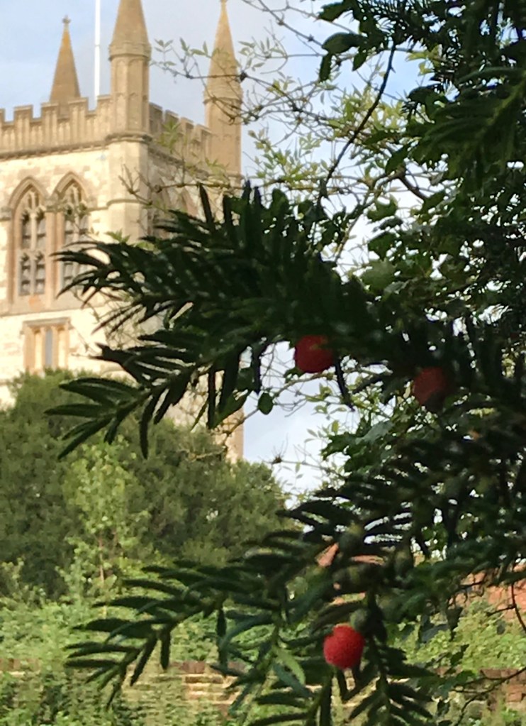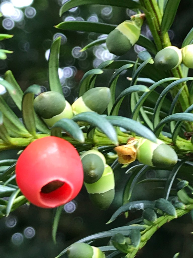 I learnt a new word today: aril. I would have called these berries but they aren’t. Though we are firmly in berry (or berry-look-a-like) season now. All parts of the yew tree are poisonous except the arils (the red fleshy parts) that surround the very toxic seeds. But birds cleverly feed on the arils and pass the seeds out again in their droppings.