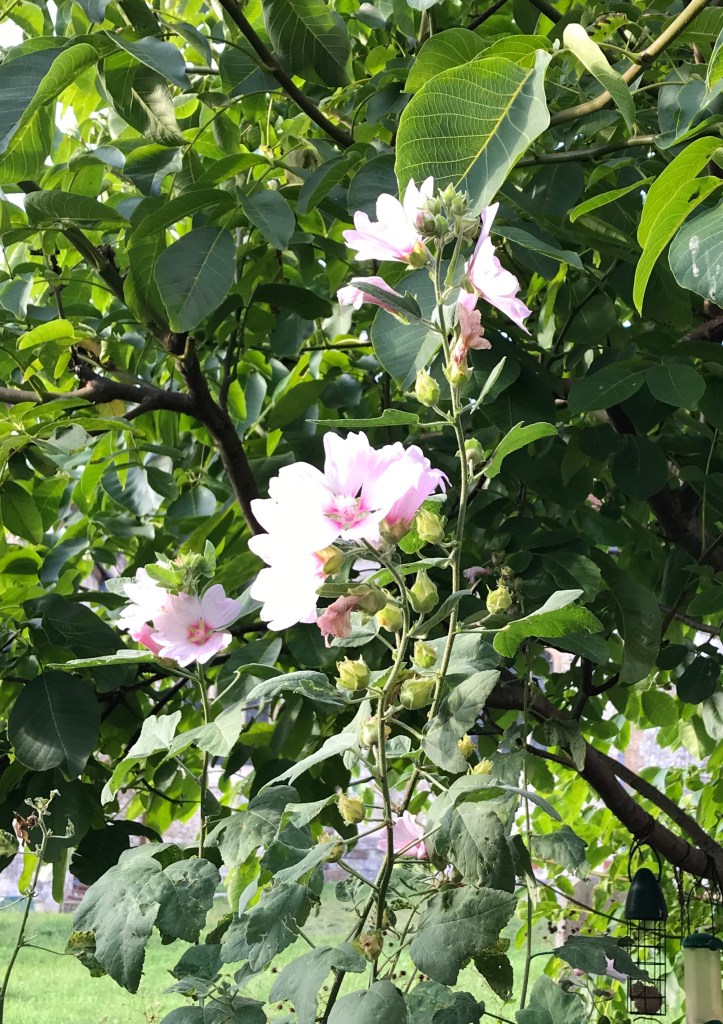 The marshmallow (I didn’t know there was a flower of that name) blooms in August and September. Then flat, round fruits appear known as ‘cheeses’.