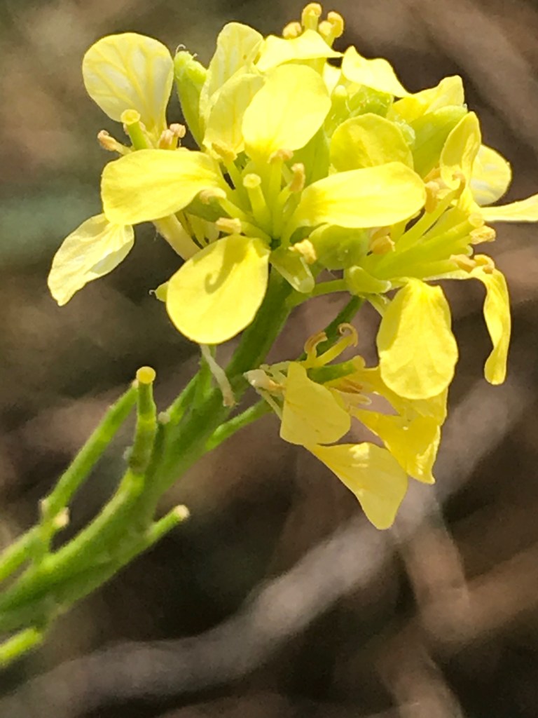 Leaving the beach on a very hot afternoon, I saw these tiny yellow field mustard flowers lining the dusty path on the dunes. They’re also known as charlock and California rape.