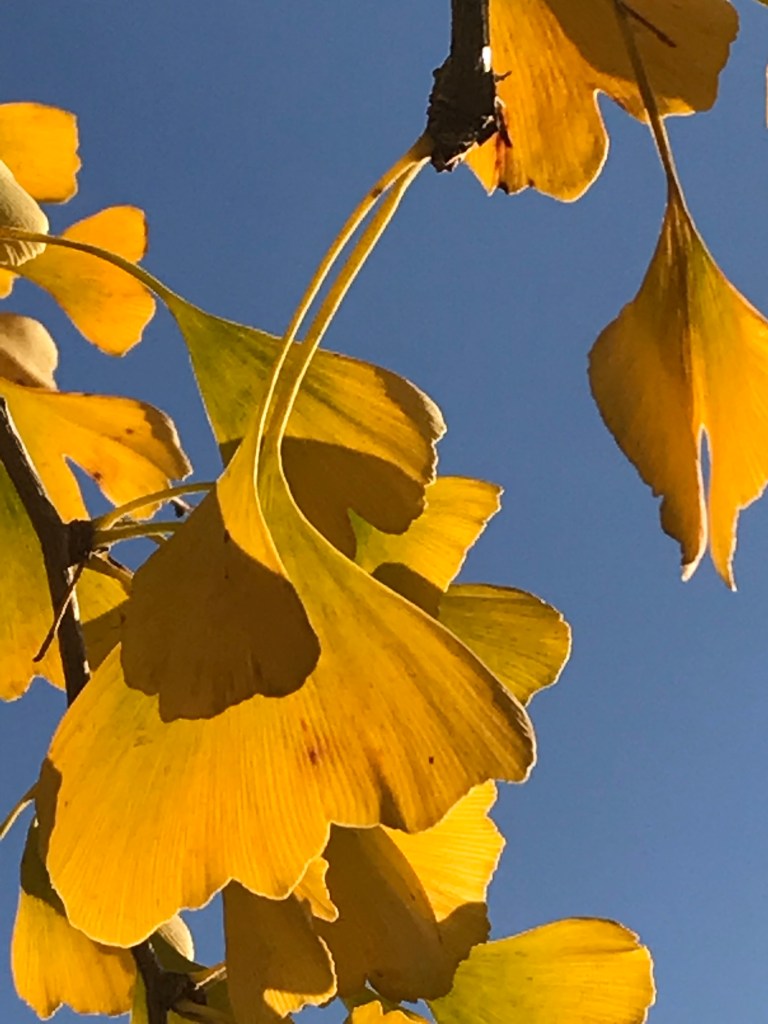 It turns out they are the only leaves in this fan shape. Not only that, the ginkgo (native to China) is the only surviving species of the Ginkgophyta family – making it officially a living fossil.