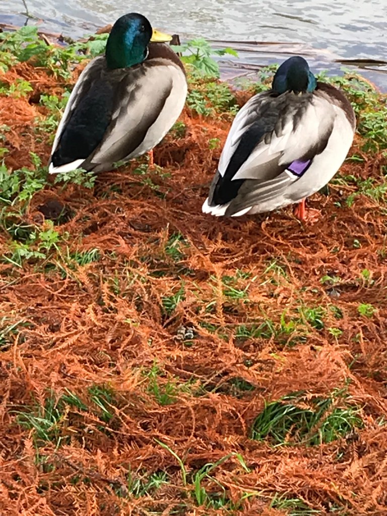 Took this gorgeous tree on Day 71 in its full mid-June green glory. It’s every bit as striking now, providing an orange carpet for two mallards by the river Wey.