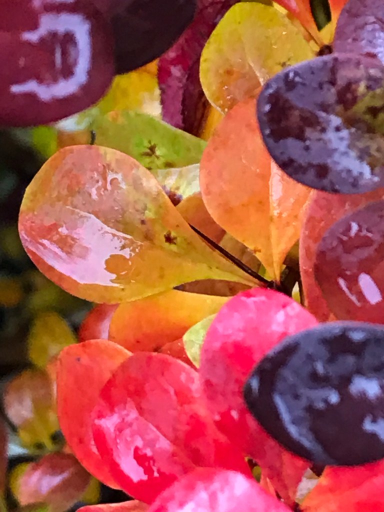 Just when you’re getting bored with red berries, up pop some original purple-pink ones. These looked as though they’d been glacéd too. I was a bit worried that if anyone saw me snapping them outside the eye hospital, they might think I didn’t really need my appointment. But I think I got away with it…